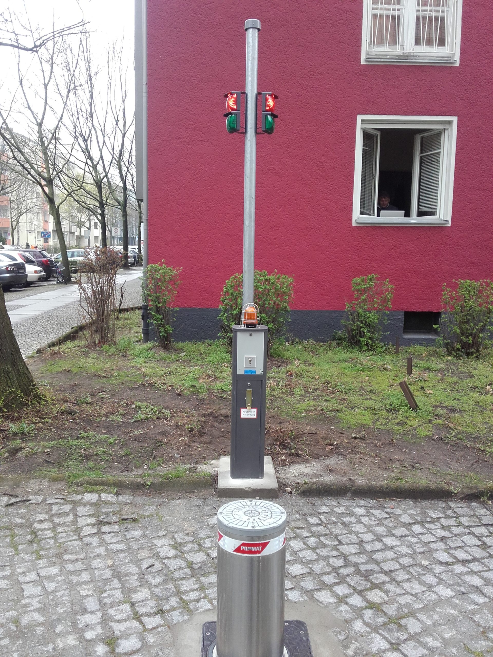Die Notentriegelung bei Stromausfall erfolgt am Poller mittels Spezialschlüssel.